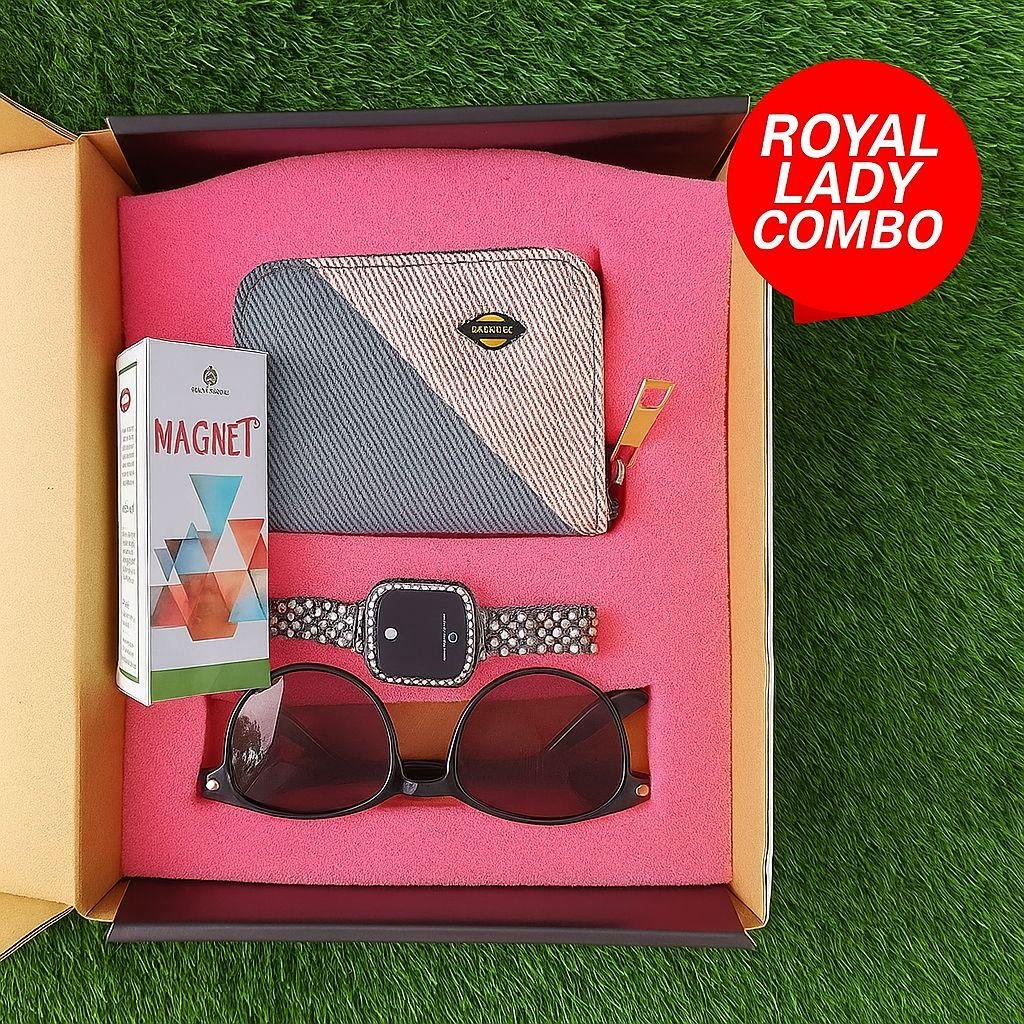 Looking for the perfect combination of style, elegance, and functionality? This exclusive sunglass, wallet, attar, and watch combo for women is thoughtfully curated to bring sophistication and practicality to your day-to-day essentials. Whether it’s for a casual outing, a professional setting, or a special event, these items will not only meet your needs but elevate your overall look.